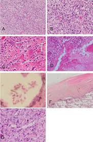 Also seen was collagen necrosis, anastomosing bands of often hyalinised collagen with a prominent storiform pattern, and where cellular detail was present there were hyperchromatic nuclei.